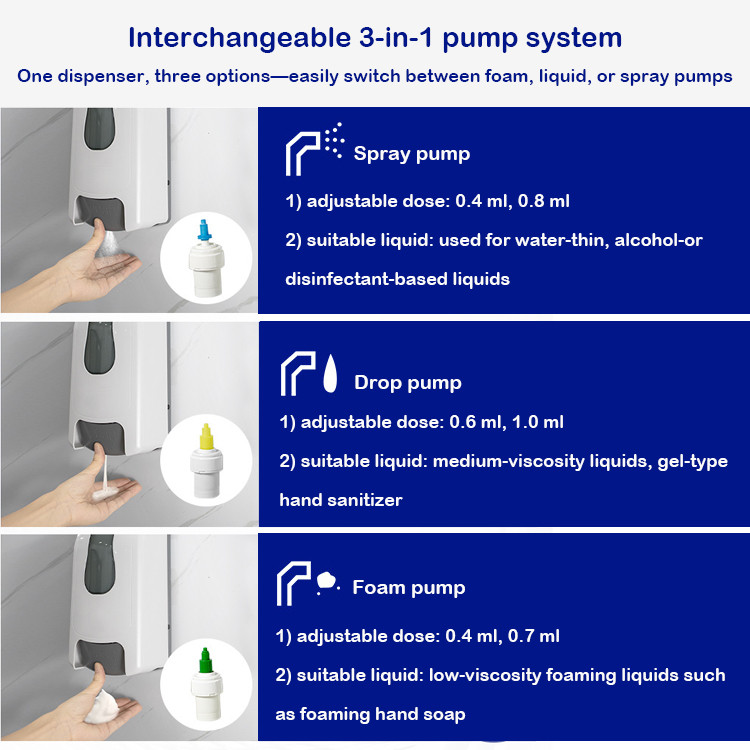 A3: Supports refillable bottles, disposable bottles, and disposable pouches.